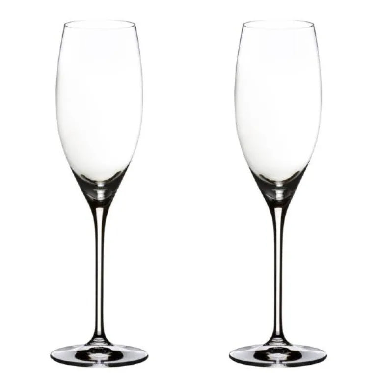 To stykk champagneglass, Cuvée Prestige, fra Riedels serie Vinum. Et elegant glass i en lang, smal modell som er perfekt til champagne og andre musserende viner.
