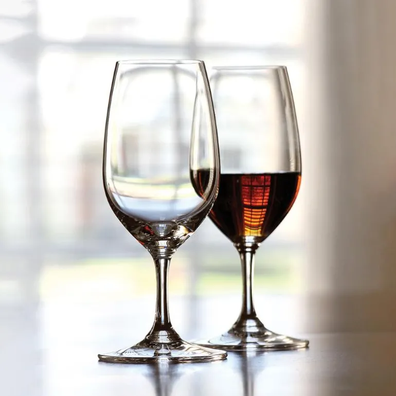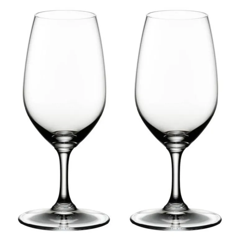 To stykk, Port, sterkvinsglass fra Riedel Vinum. Dette vinglasset passer perfekt til portvin eller lignende typer sterkvin. Glasset har en avlang klokke som er relativ liten. Klokken lar «vinen» i drikken utvikles, samtidig som den demper den sterke duften av alkoholen.