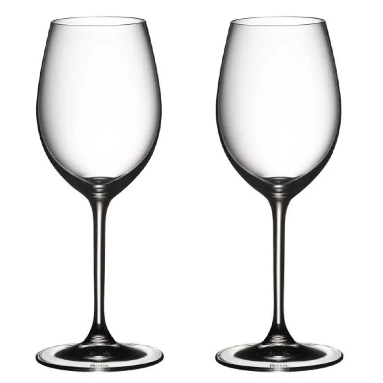 To stykk druespesifikke vinglass for sauvignon blanc fra Riedel Vinum. Dette glasset er laget spesielt for viner av druen sauvignon blanc.