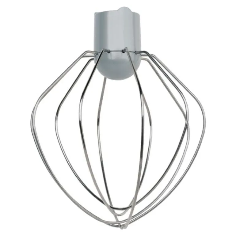 Trådvisp i stål og aluminium til Smeg kjøkkenmaskin. 15 cm i diameter og 18 cm høy. Kan rengjøres i oppvaskmaskin, men vi anbefaler likevel at den rengjøres for hånd for å forlenge levetid, da aluminium kan endre farge ved maskinvask.