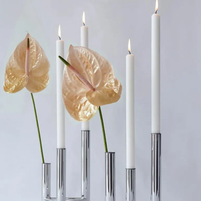 Kombinert vase og lysestake i polert stål. VISTA-vasen fra Kay Bojesen er opprinnelig en sølvlysestake, designet av Kay Bojesen på 1950-tallet. VISTA er nå satt i produksjon i stål, og i tillegg er det, uten å endre formspråket og Kay Bojesens karakteristiske linje, lagt til en annen funksjon – stativet kan nå også fungere som en kombinasjon av lysestake og vase – I hver av standens sylindere er lagt til en innsats hvor stearinlys eller blomster kan plasseres. Så du kan selv bestemme hvordan du vil bruke VISTA.