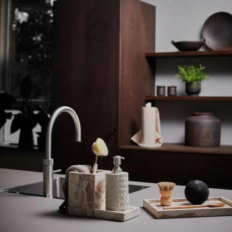 Det sofistikerte Vita oppvaskstativet fra Muubs i den fortryllende fargen Seashell! Dette elegante oppvaskstativet er ikke bare en praktisk løsning for oppbevaring av oppvaskbørster, oppvasksåpe og kluter, det tilfører også en touch av raffinement og stil til hverdagsrutinene hjemme. Konstruert av slitesterk marmor og med en delikat rosa nyans, utgjør dette oppvaskstativet en praktisk oppbevaringsløsning som også kan anvendes på innovative måter på badet, kontoret eller på barnerommet. Oppretthold orden og eleganse på kjøkkenet med Vita oppvaskstativet.