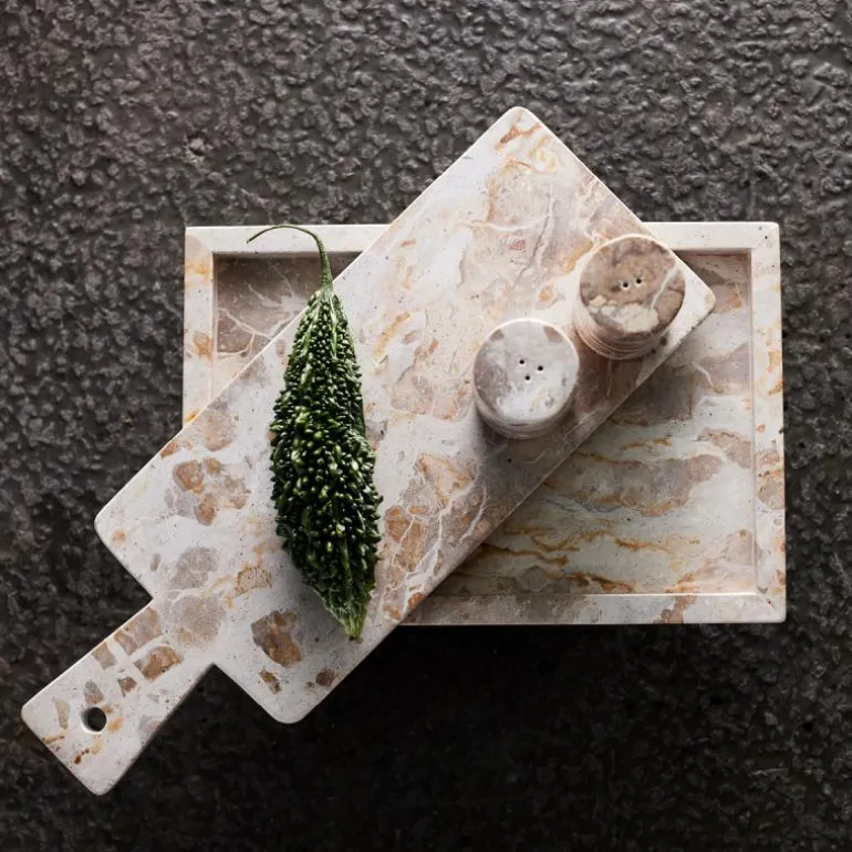 Muubs’ Vita tapasbrett i seashell er et vakkert og funksjonelt serveringsbrett laget av rosa marmor. Med målene 14,5 x 39 cm er dette brettet perfekt for å servere en rekke deilige tapas eller snacks. Den naturlige variasjonen i farger og mønstre gjør hvert brett unikt, og tilfører en ekstra touch til din serveringssamling. Brettet er også velegnet som et dekorativt element på bordet ditt.
