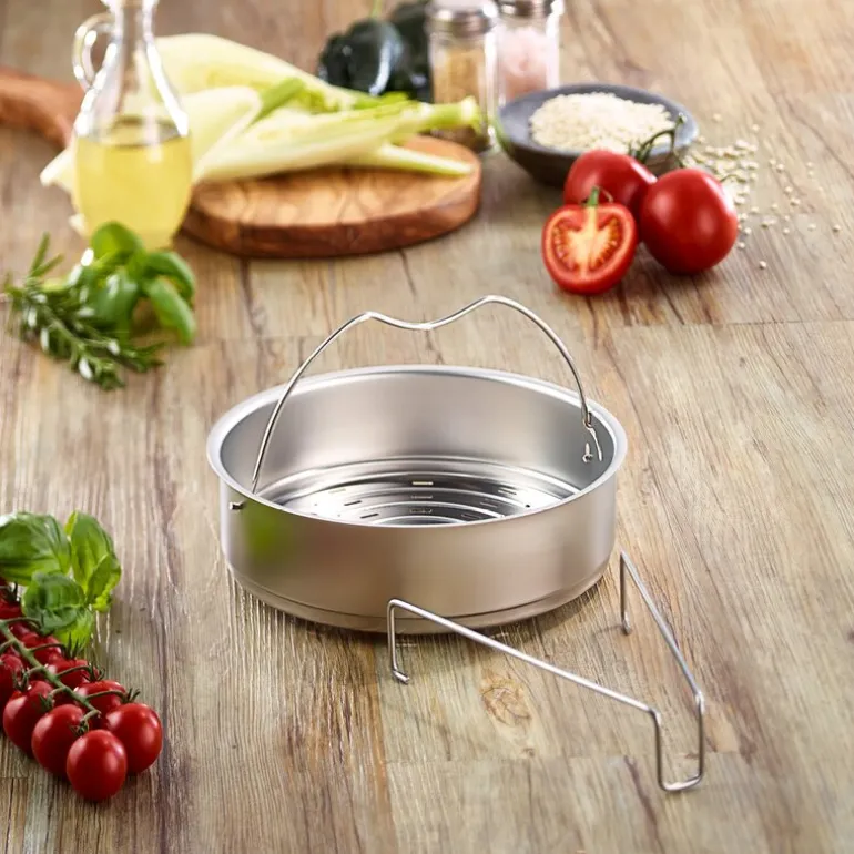 Kurven er ideell for å lage alt fra grønnsaker til fisk, og stativet gir ekstra stabilitet under bruk. Med dette tilbehøret kan du utnytte trykkokerens fulle potensiale og oppnå sunne, smakfulle måltider på kort tid.