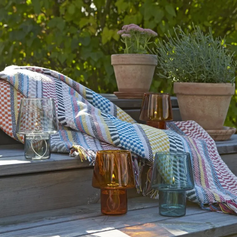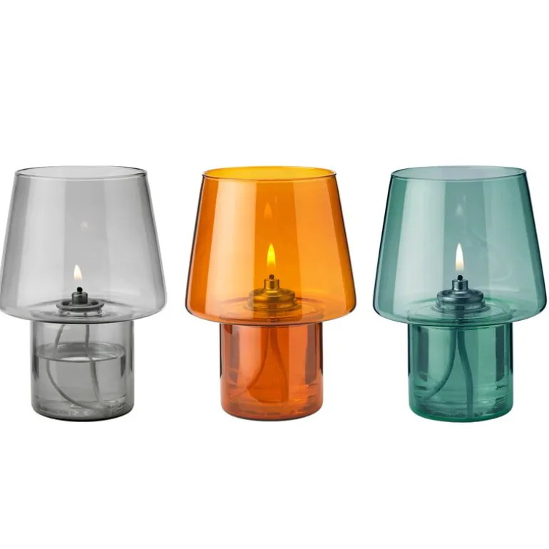 Oljelampe, Viva hurricane Amber fra Stelton. Viva er produsert i vakre farger med inspirasjon fra italiensk glasskunst. Viva kan brukes både inne og ute, og har et enkelt, estetisk uttrykk.