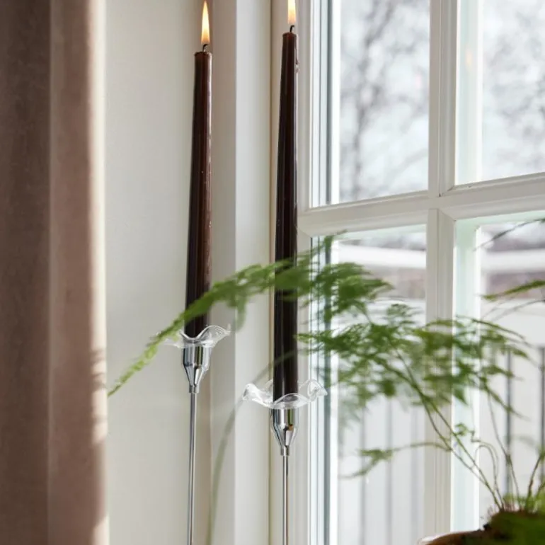 Kjære lysmansjett – som vi har savnet deg! Viva light cuff er et resultat av en lengsel etter å bringe tilbake noe som er dekorativt, men også praktisk i våre hjem. Stearinlys er en stemningsforsterker som vi elsker, men resultatet er ofte dryppende lys som renner nedover både bord og vinduskarmer. Med lette mansjetter er problemet løst. I tillegg kan du enkelt forvandle en gammel, eller ny, lysestake til noe helt nytt. Formen på Viva light cuff er hentet fra vintage detaljer kombinert med dagens organiske former. Laget av glass. Tilgjengelig i to farger – klar og gul.