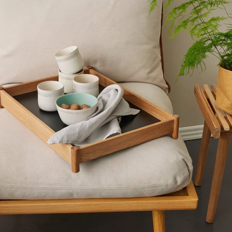 Viva serverigsbrett lite 33,5×26,8×7,3 cm eik fra Spring Copenhagen. Viva er brettet som gjør hverdagen litt vakrere. Viva er designet av Allan Nøddebo, som alltid streber etter å skape balanse mellom visuelle inntrykk og funksjonalitet, estetikk og følelser. Viva kommer i to størrelser og er det ideelle serveringsbrettet søndag morgen, eller magasin og brevbrett på kontoret eller på salongbordet.