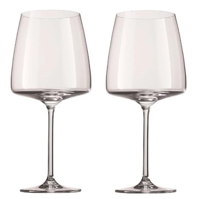 Eske med 2 stk rødvinsglass, burgundy 71 cl, i serien Vivid Senses fra Zwiesel.Vivid Senses tar kompleksiteten ut av moderne vinopplevelse: Med bare fem glassformer kan alle vinstiler dekkes. Dermed spiller det ingen rolle om du serverer rødvin, hvitvin eller rosé. Hvilket glass du velger, avgjøres bare av vinens aroma – og ikke av fargen. Den moderne serien, som er laget av Tritan® krystallglass i den bayerske skogen, representerer følgende fem aroma stiler: Light and fresh, fruity and delicate, velvety and sumptuous, flavoursome and spicy samt light and fresh (sparkling) Zwiesel er en tysk kvalitetsprodusent av glass. Med stolte tradisjoner siden 1872 er Zwiesel ikke først og fremt en industribedrift, men snarere som et håndverk fra den eksklusive glasskulturen. Bedriften har erfaringer som strekker seg på tvers av generasjonerHistorien til Zwiesel strekker seg tilbake til 1872 da Anton Muller startet et lite glassverk som nå har utviklet seg til å bli en av de internasjonalt ledende produsentene av glass. Med fokus på kvalitet i hvert produkt er ikke Zwiesel først og fremst en industribedrift, men et ekte håndverk som blir overlevert fra generasjon til generasjon. Tradisjon og innovasjon smeltes sammen til glasskunst i hvert eneste glass. Glassene er ment for å skape glede og fellesskap, og når en skåler med et Zwiesel-glass høres den umiskjennelige lyden av ekte gjestfrihet. Alle Zwiesel-glass tåler oppvaskmaskin, og bør kjøres på et glassprogram på maks 55 °C. Sett glassene stødig slik de ikke faller, og unngå at glassene kommer i kontakt med hverandre eller andre gjenstander i maskinen. Vaser og karafler bør vaskes for hånd. Bruk vaskemiddel som er anbefalt for glass.