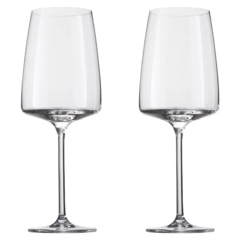 Eske med 2 stk hvitvinsglass, chardonnay 53 cl, i serien Vivid Senses fra Zwiesel.Vivid Senses tar kompleksiteten ut av moderne vinopplevelse: Med bare fem glassformer kan alle vinstiler dekkes. Dermed spiller det ingen rolle om du serverer rødvin, hvitvin eller rosé. Hvilket glass du velger, avgjøres bare av vinens aroma – og ikke av fargen. Den moderne serien, som er laget av Tritan® krystallglass i den bayerske skogen, representerer følgende fem aroma stiler: Light and fresh, fruity and delicate, velvety and sumptuous, flavoursome and spicy samt light and fresh (sparkling) Zwiesel er en tysk kvalitetsprodusent av glass. Med stolte tradisjoner siden 1872 er Zwiesel ikke først og fremt en industribedrift, men snarere som et håndverk fra den eksklusive glasskulturen. Bedriften har erfaringer som strekker seg på tvers av generasjonerHistorien til Zwiesel strekker seg tilbake til 1872 da Anton Muller startet et lite glassverk som nå har utviklet seg til å bli en av de internasjonalt ledende produsentene av glass. Med fokus på kvalitet i hvert produkt er ikke Zwiesel først og fremst en industribedrift, men et ekte håndverk som blir overlevert fra generasjon til generasjon. Tradisjon og innovasjon smeltes sammen til glasskunst i hvert eneste glass. Glassene er ment for å skape glede og fellesskap, og når en skåler med et Zwiesel-glass høres den umiskjennelige lyden av ekte gjestfrihet. Alle Zwiesel-glass tåler oppvaskmaskin, og bør kjøres på et glassprogram på maks 55 °C. Sett glassene stødig slik de ikke faller, og unngå at glassene kommer i kontakt med hverandre eller andre gjenstander i maskinen. Vaser og karafler bør vaskes for hånd. Bruk vaskemiddel som er anbefalt for glass.