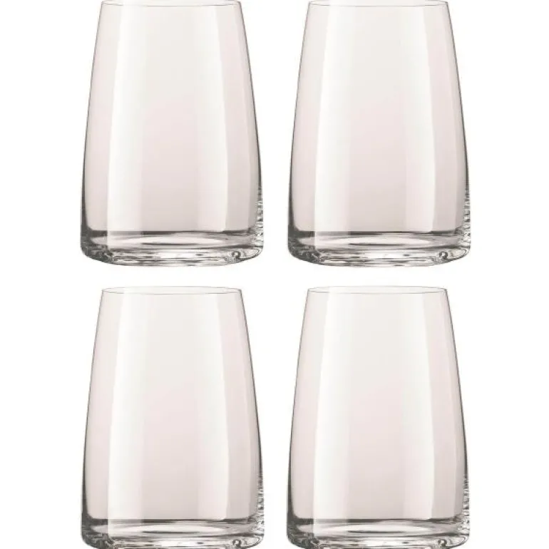 Eske med 4 stk flotte vannglass, 50 cl, i Vivid Sense-serien fra Zwiesel. Vannglassene er en god følgesvenn til vinglassene i samme serie.Perfekt til både tapp-og kullsyreholdig vann, som til brus og saft.Rengjøres i oppvaskmaskin, bruk gjerne glansemiddel for perfekt resultat.Zwiesel er en tysk kvalitetsprodusent av glass. Med stolte tradisjoner siden 1872 er Zwiesel ikke først og fremt en industribedrift, men snarere som et håndverk fra den eksklusive glasskulturen. Bedriften har erfaringer som strekker seg på tvers av generasjonerHistorien til Zwiesel strekker seg tilbake til 1872 da Anton Muller startet et lite glassverk som nå har utviklet seg til å bli en av de internasjonalt ledende produsentene av glass. Med fokus på kvalitet i hvert produkt er ikke Zwiesel først og fremst en industribedrift, men et ekte håndverk som blir overlevert fra generasjon til generasjon. Tradisjon og innovasjon smeltes sammen til glasskunst i hvert eneste glass. Glassene er ment for å skape glede og fellesskap, og når en skåler med et Zwiesel-glass høres den umiskjennelige lyden av ekte gjestfrihet. Alle Zwiesel-glass tåler oppvaskmaskin, og bør kjøres på et glassprogram på maks 55 °C. Sett glassene stødig slik de ikke faller, og unngå at glassene kommer i kontakt med hverandre eller andre gjenstander i maskinen. Vaser og karafler bør vaskes for hånd. Bruk vaskemiddel som er anbefalt for glass.