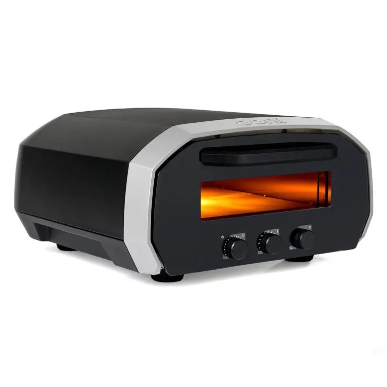 Helelektriske Volt 12 fra Ooni er en allsidig pizzaovn for innendørs eller utendørs bruk. Pizzaovnen kommer med varmebevarende dør i borosilikatglass med tre ruter. Den har justerbar over- og undervarme, og er kraftig isolert så den ikke blir for varm på utsiden. Ovnen har innebygd timer, temperaturkontroll og booster-modus, samt innebygde håndtak for lett og enkel portabilitet.