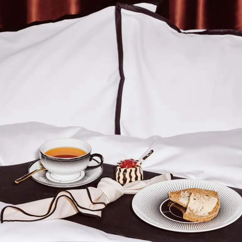 VOYAGE, er en eksklusiv og sofistikert porselensserie i åtte funksjonelle deler, designet av den dyktige stylisten Storm. Porselensserviset er hvitt med lekker sort dekor i en suveren miks av art deco, luksuriøs fransk bistro og moderne interiør. Inspirasjonen har Storm hentet fra sine mange reiser verden rundt, fra de eksklusive interiørene, fra de unike matopplevelsene og fra noen av de klassiske motedesignerne. Han har alltid vært glad i å reise, og ønsker å bringe hjem den deilige og luksuriøse hotellfølelsen.
