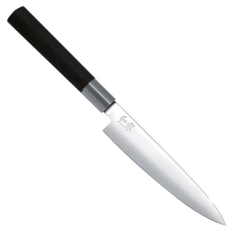 Wasabi Black er en knivserie med en vellykket kombinasjon av varig funksjonalitet og skarphet, robust materialkvalitet og et minimalistisk design. Det høypolerte knivbladet er rustfritt og består av 1K6 stål. Det behagelige håndtaket i kompositt er vannavstøtende og gjør kniven ekstra robust på et hektisk kjøkken. Wasabi Black produseres i Japan av knivmesteren KAI med over 100 års erfaring fra knivproduksjon. Alle kniver blir smidd med presisjon på tradisjonelt vis, på samme måte som man gjorde på samuraienes tid. 56 (±1) HRC Rockwell