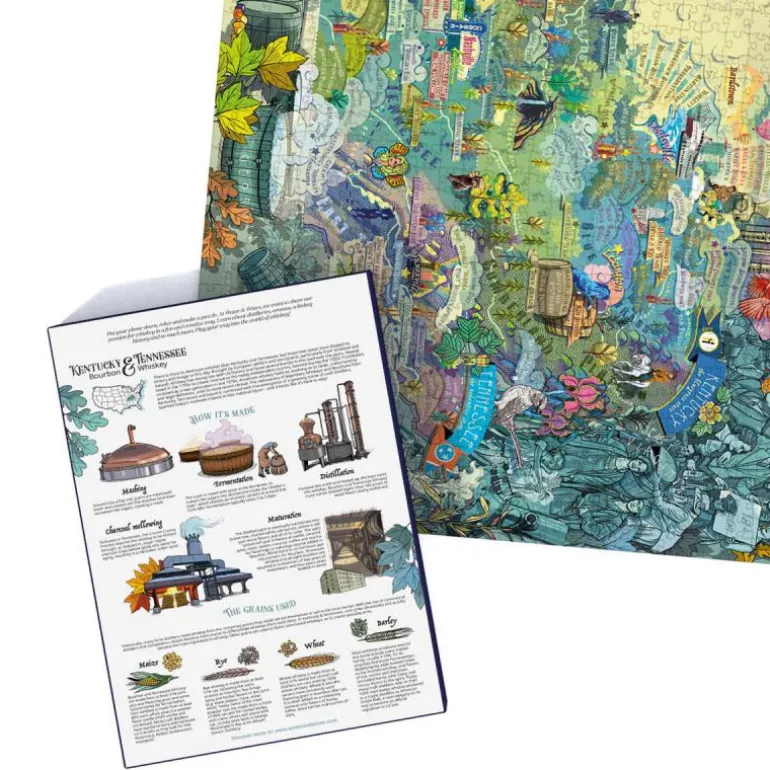 Trinn inn i bourbon-whiskyens verden fra Kentucky og Tennessee med vårt nydelig utformede puslespill. Når du setter sammen den intrikate kartet, vil du avdekke de lokale destilleriene som utgjør hjertet av whiskyscenen og reise gjennom amerikansk historie. Hver puslebit forteller historien om denne gyldne drikken og fører deg til kjernen av Sørkulturen.