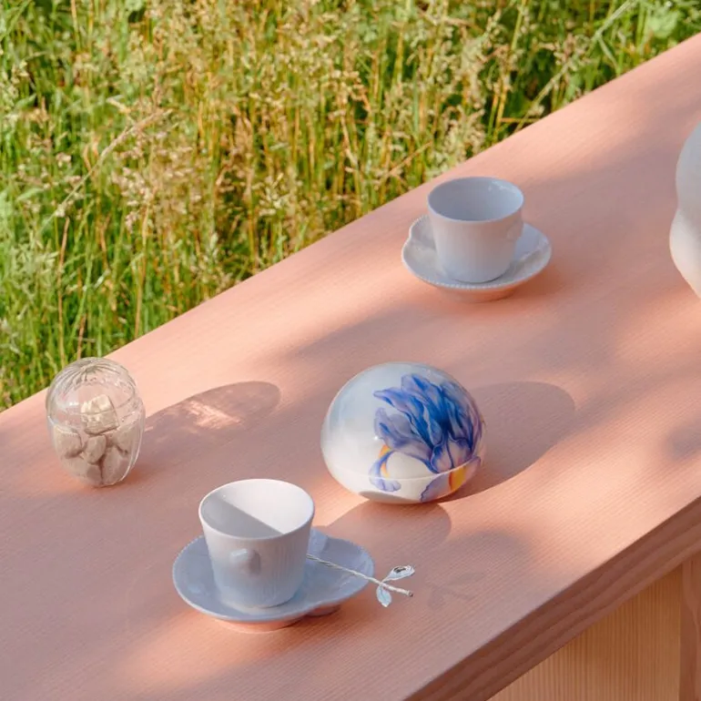 Settet fungerer utmerket alene for et minimalistisk preg, men kan også kombineres med fargerike deler fra Blue Elements og Multicoloured Elements for å skape en mer personlig og kreativ borddekking. Perfekt til morgenkaffen eller som en raffinert avslutning på et måltid.