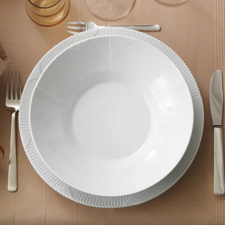 White Elements tallerken flat 28 cm fra Royal Copenhagen er et uttrykk for moderne eleganse med dype røtter i porselenstradisjonen. Designet av Louise Campbell, kombinerer denne tallerkenen klassiske referanser med et minimalistisk og raffinert formspråk. Den hvite overflaten fremhever de subtile, skulpturelle detaljene som gir serviset sitt unike særpreg.