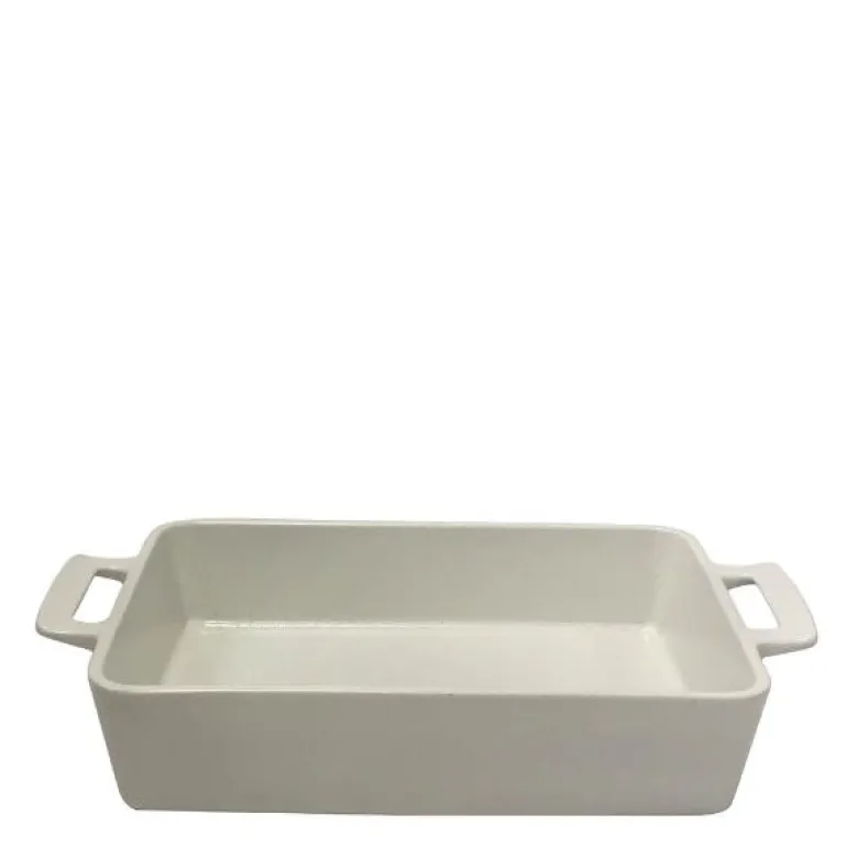 Tidløs ildfast form med håndtak. Produsert i steintøy med en tiltalende form og glasur i dempet hvit. Designet for å kunne brukes fra stekeovn til det dekkede bord. Tåler temperatur fra -18°C opp til 290°C, som gjør at den også kan fryses. Unngå brå temperaturforandring, da dette kan føre til at produktet sprekker. Kan rengjøres i oppvaskmaskin.