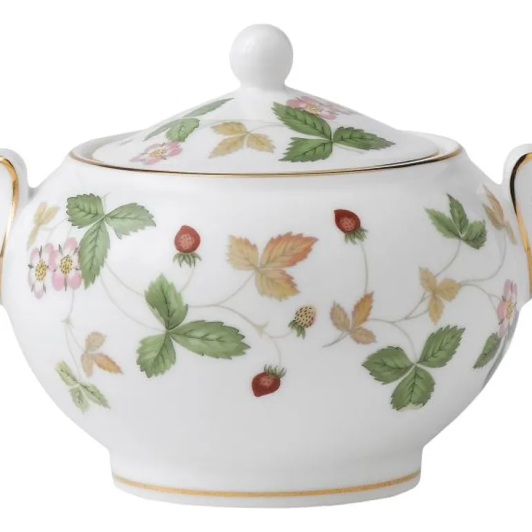 W Strawberry Cov Sugar 7cm/2.8in. Den ikoniske Wild Strawberry-kolleksjonen utgjør en del av hjertet av Wedgwood, og dens popularitet har gjort denne serien til en høyt elsket bestselger over hele verden i over 50 år. Sjarmen til de fint tegnede bladene, blomstene og saftige røde jordbærene gjenskaper en engelsk sommer med ettermiddagste, jordbær, krem og godt selskap. En skinnende kant av 22 karat gull fullfører dekorasjonen av dette elegante serviset. Mange av delene i kolleksjonen er laget i England ved å bruke det tradisjonelle håndverket som er synonymt med Wedgwood.