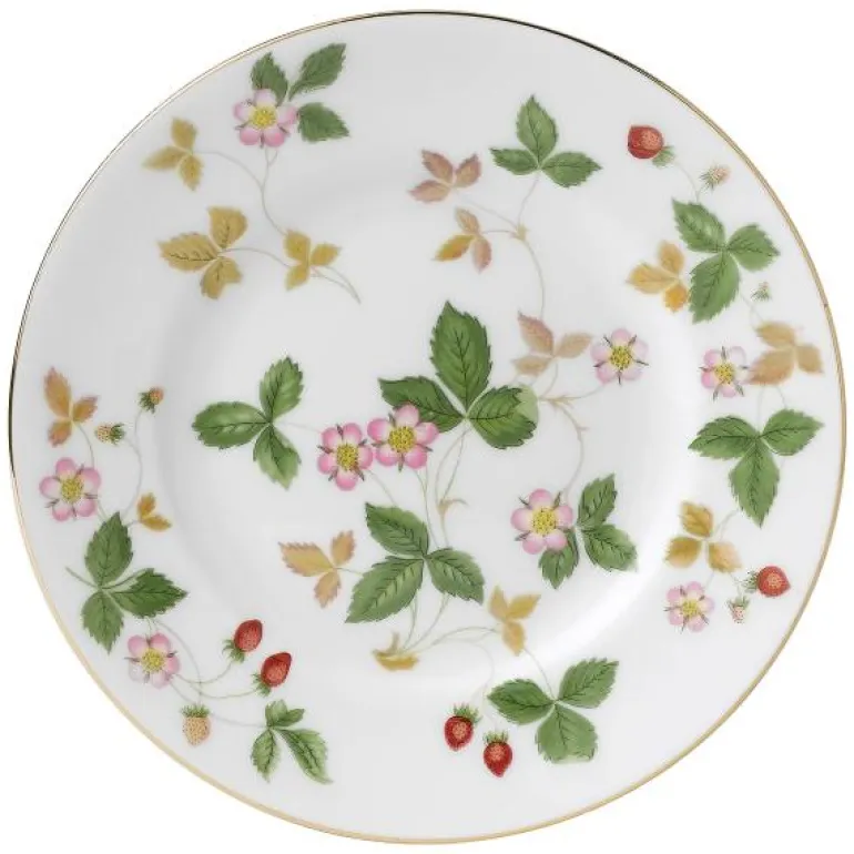 W Strawberry Plate 15cm/6in. Den ikoniske Wild Strawberry-kolleksjonen utgjør en del av hjertet av Wedgwood, og dens popularitet har gjort denne serien til en høyt elsket bestselger over hele verden i over 50 år. Sjarmen til de fint tegnede bladene, blomstene og saftige røde jordbærene gjenskaper en engelsk sommer med ettermiddagste, jordbær, krem og godt selskap. En skinnende kant av 22 karat gull fullfører dekorasjonen av dette elegante serviset. Mange av delene i kolleksjonen er laget i England ved å bruke det tradisjonelle håndverket som er synonymt med Wedgwood.