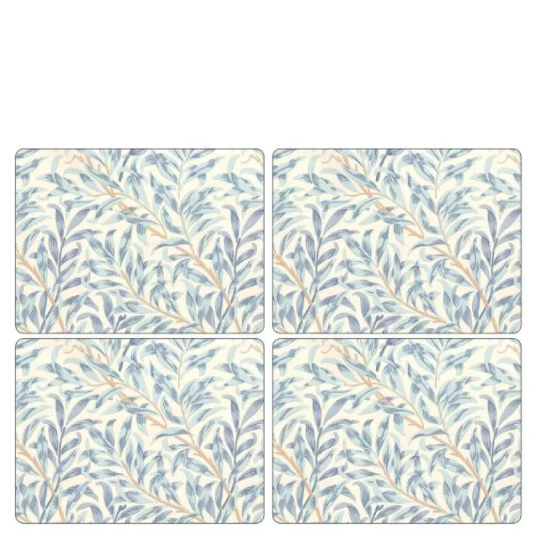 Skap en sofistikert og innbydende borddekking med dette settet med fire bordbrikker fra Morris & Co. Dekorert med det ikoniske Willow Bough-mønsteret i vakre blåtoner, gir disse brikkene et elegant og harmonisk uttrykk – perfekt til både hverdag og fest.