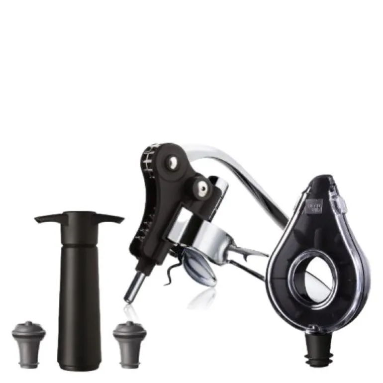 Dette Wine Air Deluxe 5 settet fra Vacu Vin er en komplett løsning for alle dine vinbehov, og det vil sikkert glede enhver vinelsker med sitt elegante design og praktiske funksjonalitet.