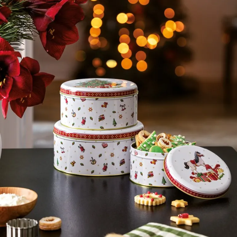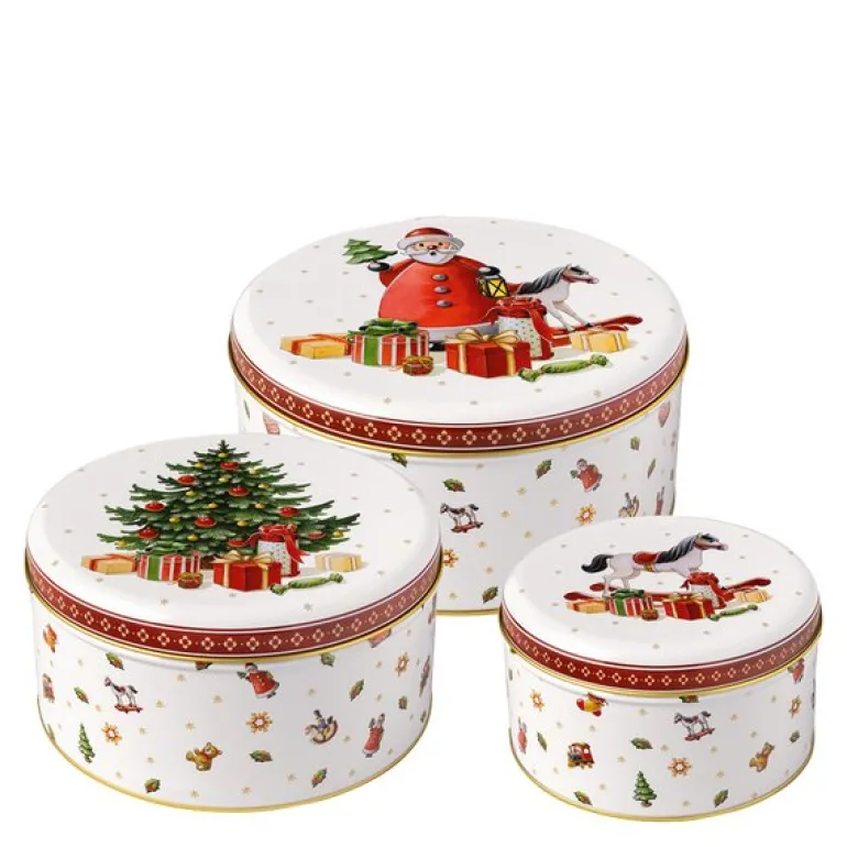 Winter Collage kakeboks sett 3 deler fra Villeroy & Boch består av tre nydelige metallbokser, perfekt for å oppbevare kjeks, småkaker og andre småting i julen. Dette settet er en del av Winter Collage-kolleksjonen, som er spesielt designet for de som ønsker å skape en varm og innbydende atmosfære i hjemmet i julehøytiden. De tre boksene har ulike størrelser og er dekorert med vakre julemotiver som gir en nostalgisk og festlig følelse.