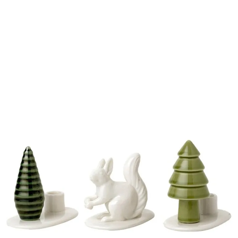 Hver del i settet er detaljert utformet for å fremkalle skogbunnens ro, hvor ekornet og trærne skaper en leken, men elegant atmosfære. Dette allsidige settet kan brukes som lysestaker for en varm og innbydende glød, eller som bordkortholdere for gjestene, noe som gir en unik og personlig stil til borddekkingen.