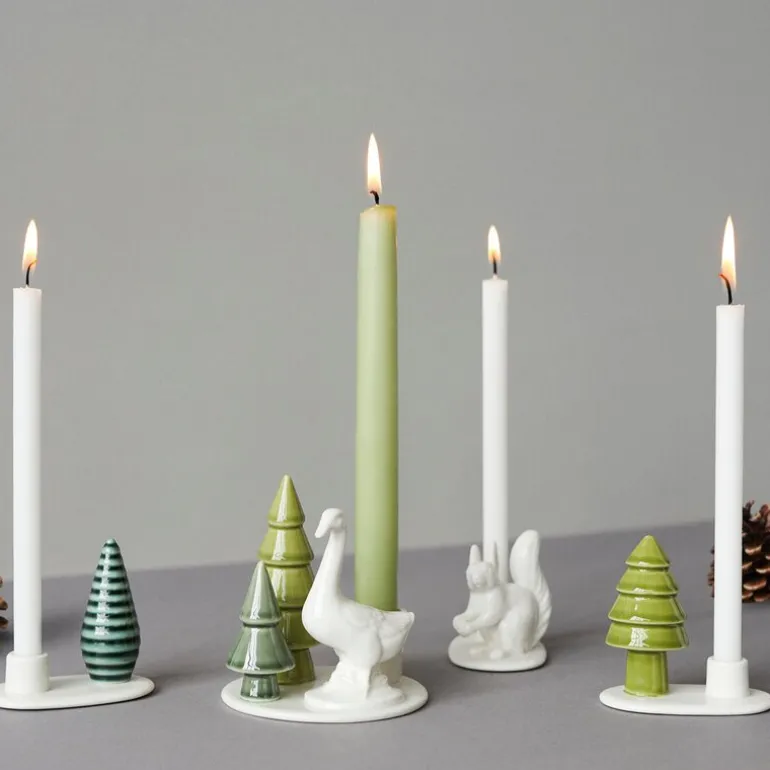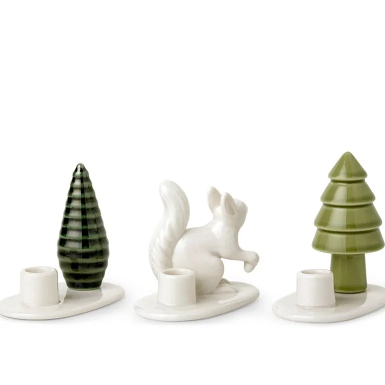 Winter Stories lysestakesett i 3 deler Ekorn fra Dottir bringer naturens magi inn i hjemmet ditt, og lar deg skape en unik vinterhistorie. Designet av Charlotte Adrian, inneholder dette settet tre vakre lysestaker – et lekent ekorn som holder sin skatt, et frodig grønt tre og et mørkere, skulpturert tre – alle designet for 13 mm stearinlys eller som bordkortholdere. Flock Squirrel-settet er ideelt for å pynte stuen, julebordet eller som en kreativ touch til festbordet, og tilfører en følelse av skogens fred og sjarm.