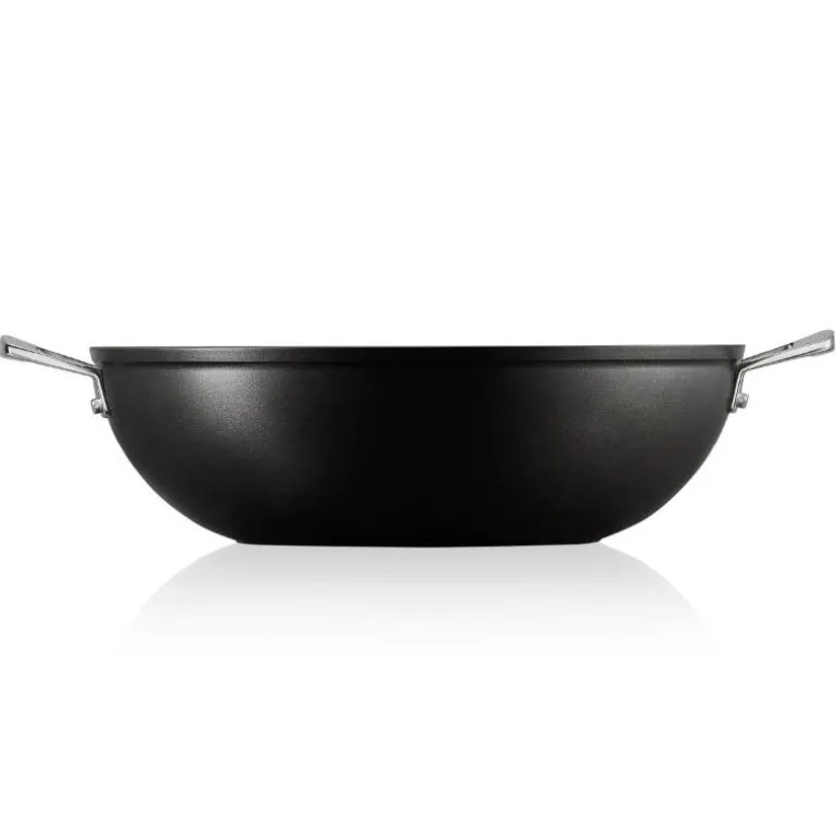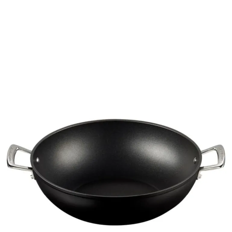 Det effektive non-stick-belegget, de skrå sidene og de to sidehåndtakene gir denne woken et utall bruksområder. Woken er laget av aluminium, som hurtig fordeler varmen utover i hele pannen på samme måte som autentiske, kinesiske stålwoker. I motsetning til den tradisjonelle utgaven, har woken fra Le Creuset non-stick-belegg av høyeste kvalitet, som forhindrer at kjøtt, grønnsaker og marinader brenner seg fast, og som gjør rengjøringen usedvanlig lett.