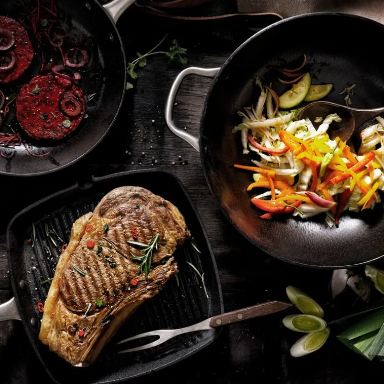 Takket være det hule håndtaket holdes grepet komfortabelt selv under høy varme. Den tåler alle typer kokeplater, inkludert induksjon, og er perfekt til både kjøtt, fisk og grønnsaker. Bevarer smak og næringsstoffer – ideell for deg som vil lage raske, smakfulle og næringsrike retter.