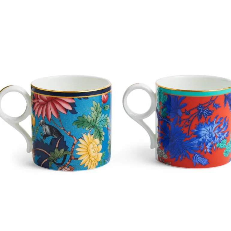 Wonderlust krus L 2 stk. Oppgrader gaven med dette Wedgwood Wonderlust settet med to krus. Med Sapphire Garden og Golden Parrot design, vil dette settet være en fantastisk gave til deg selv eller dine kjære. Enten du velger te eller kaffe , er det mye å utforske med disse vakre mønstrene. Laget av benporselen med 22 carats gulldetaljer.Håndvask anbefales.