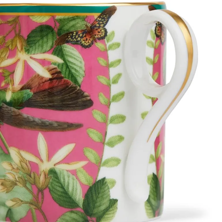 Wonderlust Pink Lotus Mug S/S. Ta en reise rundt i verden med Wonderlust-kolleksjonen, en eklektisk samling av mønstrede skåler, krus, middagstallerkener, duftlys, bilderammer og mer, alt inspirert av underverkene ved å reise fra Europa til Asia. Her vil du avdekke fargerike, eklektiske design inspirert av den eksepsjonelle skjønnheten til eksotiske blomster og planter fra de forskjellige kontinentene.Alle delene presenteres i vakre Wedgwood-blå gaveesker som er klare for å feire alle livets spesielle øyeblikk.