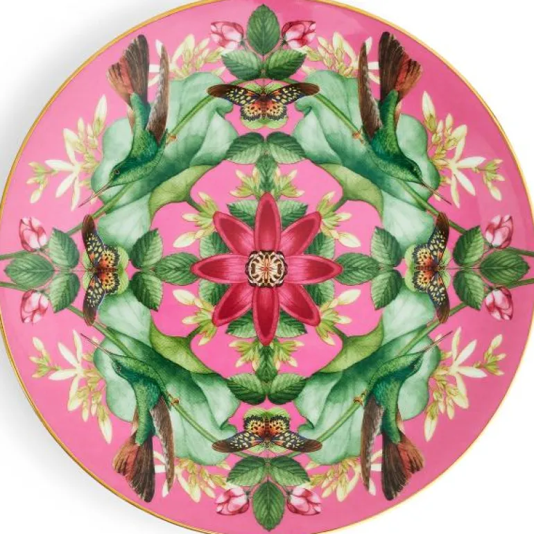 Wonderlust Pink Lotus 20cm Plate. Ta en reise rundt i verden med Wonderlust-kolleksjonen, en eklektisk samling av mønstrede skåler, krus, middagstallerkener, duftlys, bilderammer og mer, alt inspirert av underverkene ved å reise fra Europa til Asia. Her vil du avdekke fargerike, eklektiske design inspirert av den eksepsjonelle skjønnheten til eksotiske blomster og planter fra de forskjellige kontinentene.Alle delene presenteres i vakre Wedgwood-blå gaveesker som er klare for å feire alle livets spesielle øyeblikk.