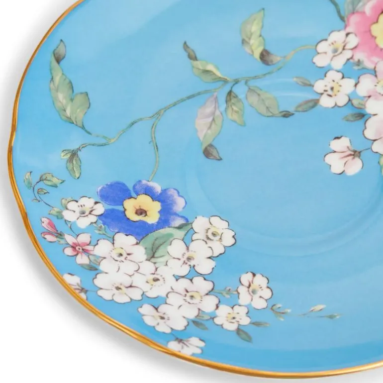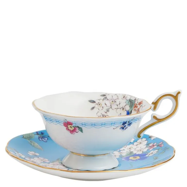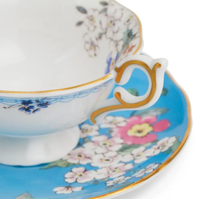 Wonderlust Tcup/Scr Apple Blossom BXD. Ta en reise rundt i verden med Wonderlust-kolleksjonen, en eklektisk samling av mønstrede skåler, krus, middagstallerkener, duftlys, bilderammer og mer, alt inspirert av underverkene ved å reise fra Europa til Asia. Her vil du avdekke fargerike, eklektiske design inspirert av den eksepsjonelle skjønnheten til eksotiske blomster og planter fra de forskjellige kontinentene.Alle delene presenteres i vakre Wedgwood-blå gaveesker som er klare for å feire alle livets spesielle øyeblikk.