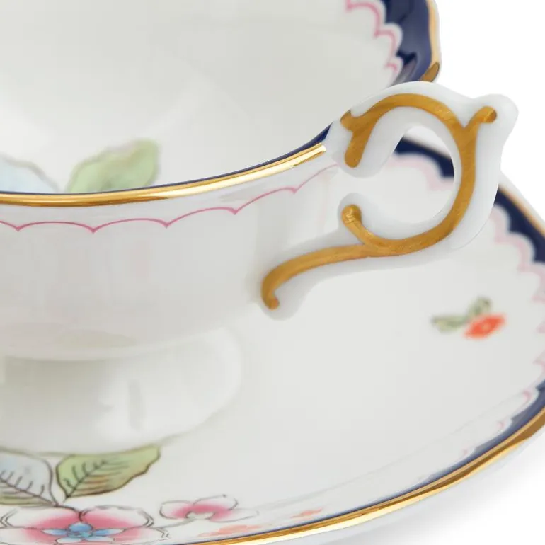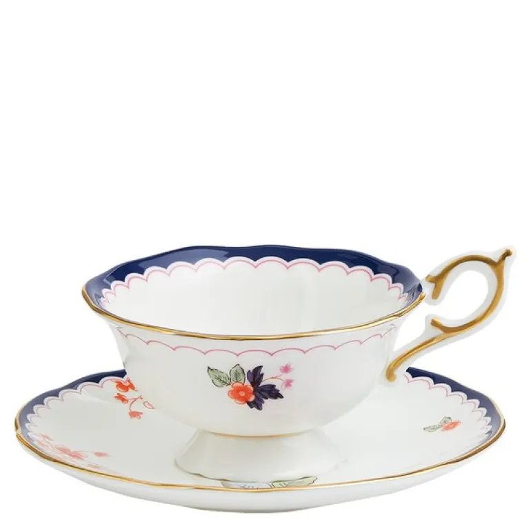 Wonderlust Tcup/Scr Jasmine Bloom BXD. Ta en reise rundt i verden med Wonderlust-kolleksjonen, en eklektisk samling av mønstrede skåler, krus, middagstallerkener, duftlys, bilderammer og mer, alt inspirert av underverkene ved å reise fra Europa til Asia. Her vil du avdekke fargerike, eklektiske design inspirert av den eksepsjonelle skjønnheten til eksotiske blomster og planter fra de forskjellige kontinentene.Alle delene presenteres i vakre Wedgwood-blå gaveesker som er klare for å feire alle livets spesielle øyeblikk.