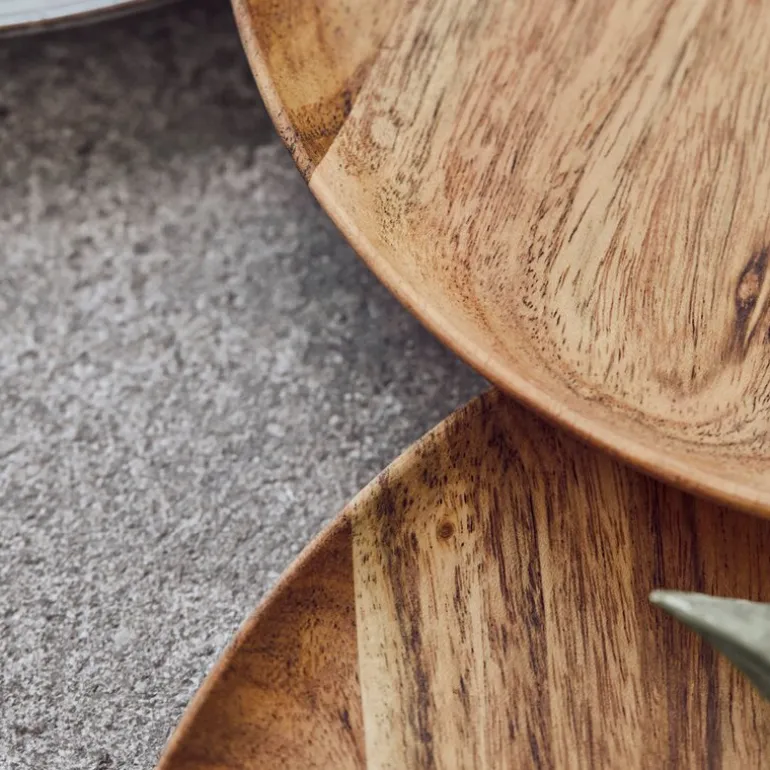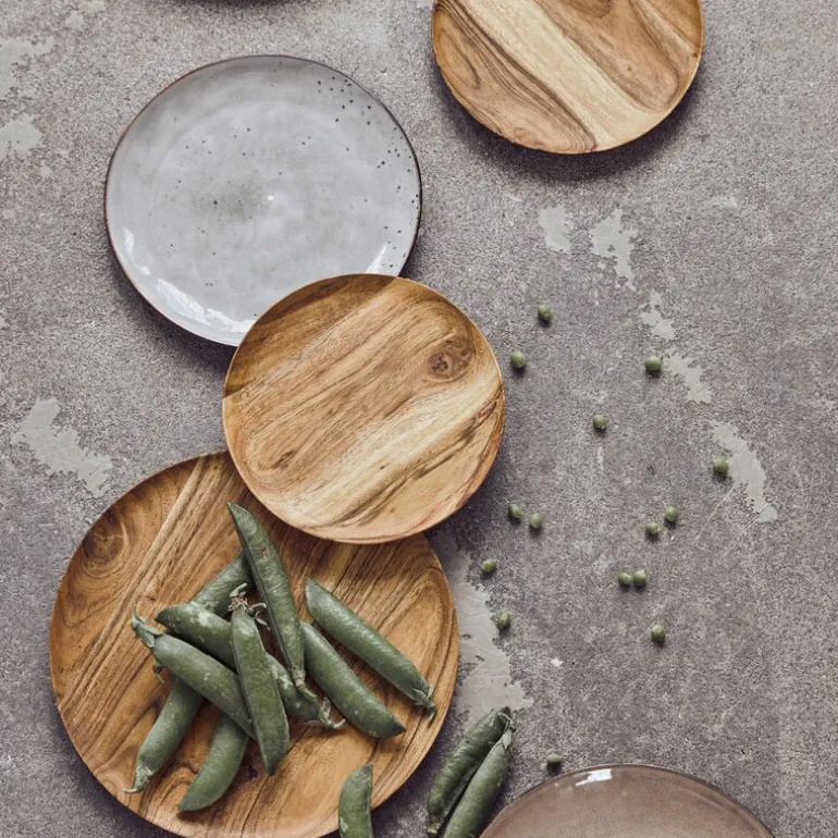 Wood brett 17,5 cm fra House Doctor kommer i et sett med to fat laget av akasietre, kjent for sitt slitesterke og vakre uttrykk. De naturlige årringene og varme tonene gjør dem dekorative i seg selv, samtidig som de er ideelle til servering av småretter eller snacks.