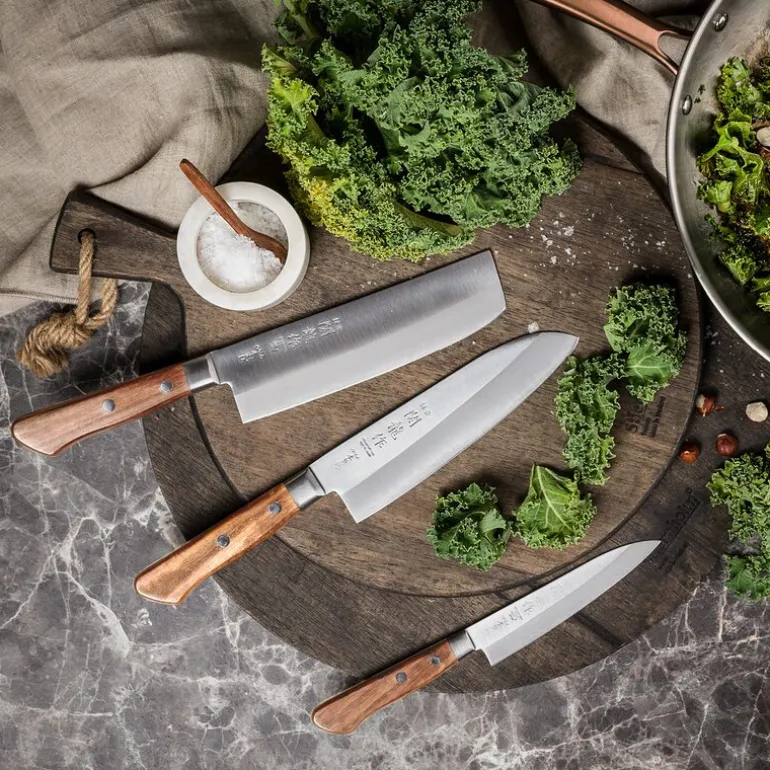 Sekiryu Wood-serien er kjent for sitt 3-lags stål, hvor det midterste laget består av høykvalitets japansk molybdenstål, omgitt av 420J2 rustfritt stål. Med en hardhet på 56-58 på Rockwell-skalaen, er denne kniven et resultat av over 700 års japansk tradisjon for sverd- og knivproduksjon fra byen Seki. Navnet Sekiryu, som betyr «drage», symboliserer det ypperste innen japansk håndverk. Med Sekiryu Santokukniv får du ikke bare et redskap, men en ren og skjær glede i matlagingen.
