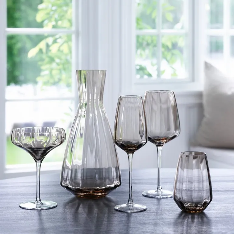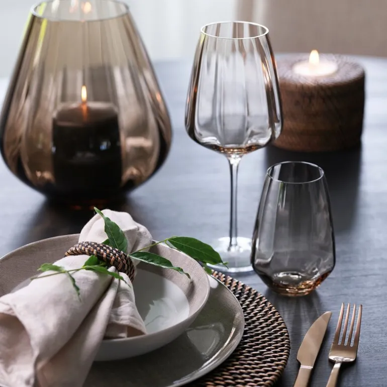 XO vinglass 60 cl i topaz optic fra Magnor er en del av et nytt og elegant vinservise designet av interiørdesigneren og tv-profilen Halvor Bakke. Serien XO utstråler en stilren og eksklusiv følelse, med en lys topas tonet glassklokke som har en virvelformet optikk kombinert med en funklende isklar stett. Denne kombinasjonen skaper et vakkert lysspill som minner om gamle herskapelige glass, perfekt matchet til Halvor Bakkes porselensserviser Linen, Noir og Nostalgi.