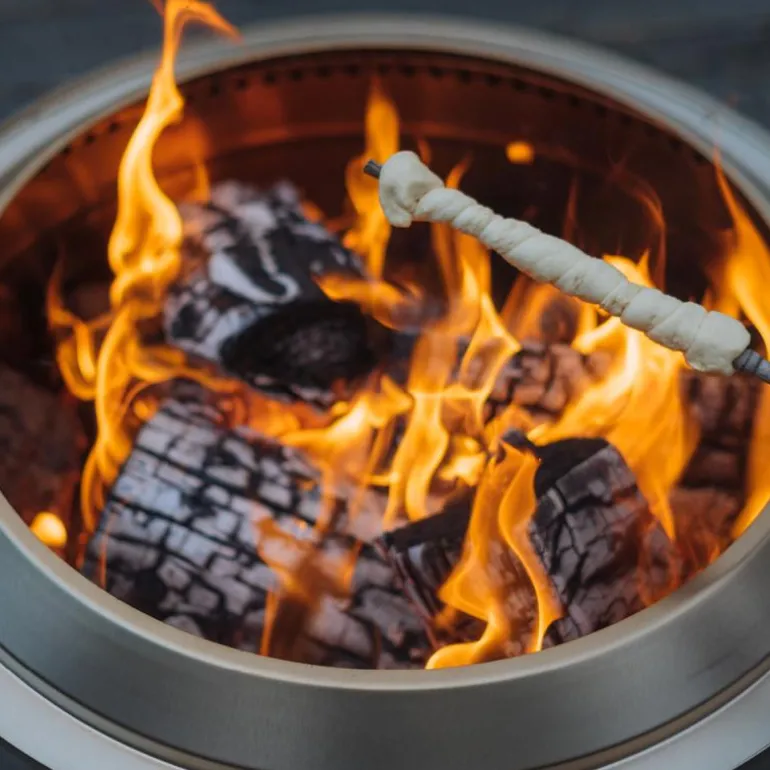 Yukon 27 er designet med Solo Stove sitt patenterte system for luftstrømning, som sikrer en røykfri og effektiv forbrenning. Du kan med andre ord nyte flammene uten å bli plaget av irriterende røyk. Luftsirkulasjonen sørger for ekstra varme på toppen – og ingen varme mot underlaget. Platen i bunn sørger for at underlaget beskyttes mot varme og gnister, samtidig som den gir et elegant utseende.
