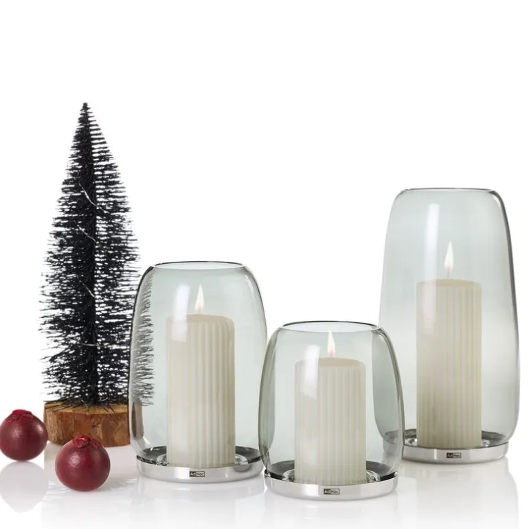 Den robuste basen i polert rustfritt stål, sammen med silikonpunkter, sikrer trygg plassering av stearinlys og gir god luftstrøm for å redusere sotsamling. Hvert Yuna-stykke er unikt, og det allsidige designet gjør den like vakker utendørs som innendørs.