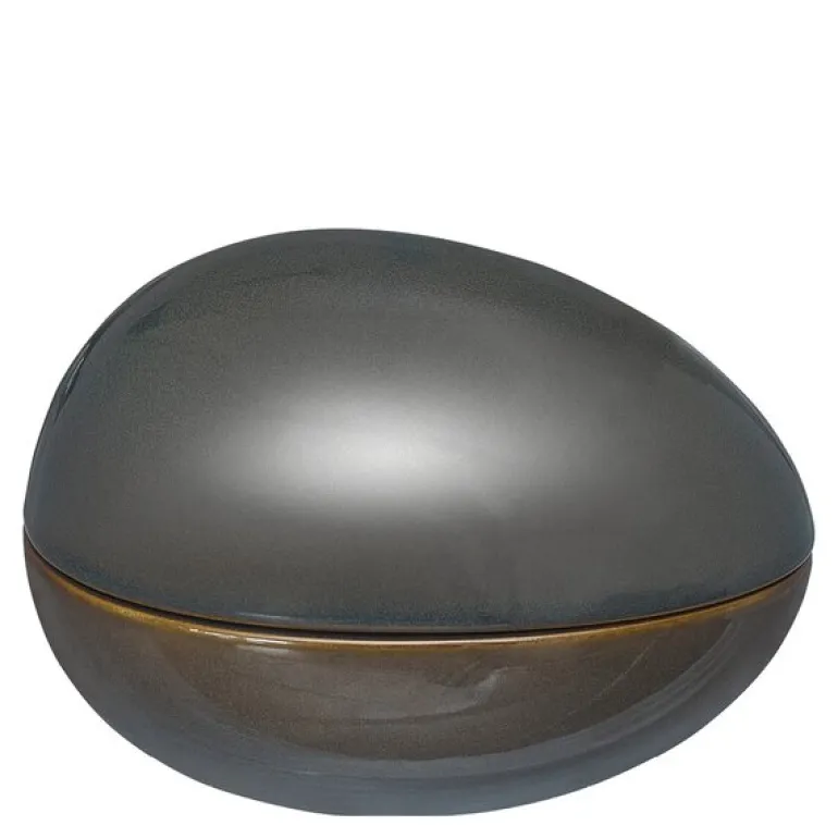 Denne Zen eggeskålen fra Cultdesign er både praktisk og dekorativ. Med sin vakre reaktive glasur i petrol og brun gir den en naturlig og varm estetikk til hjemmet. Skålen, som måler 16×11 cm, er ideell som en godteri-gjemsel eller til annen oppbevaring. Laget av slitesterkt steintøy og designet av Maria Söderberg, er dette en stilfull detalj som passer perfekt i både moderne og klassiske interiør.